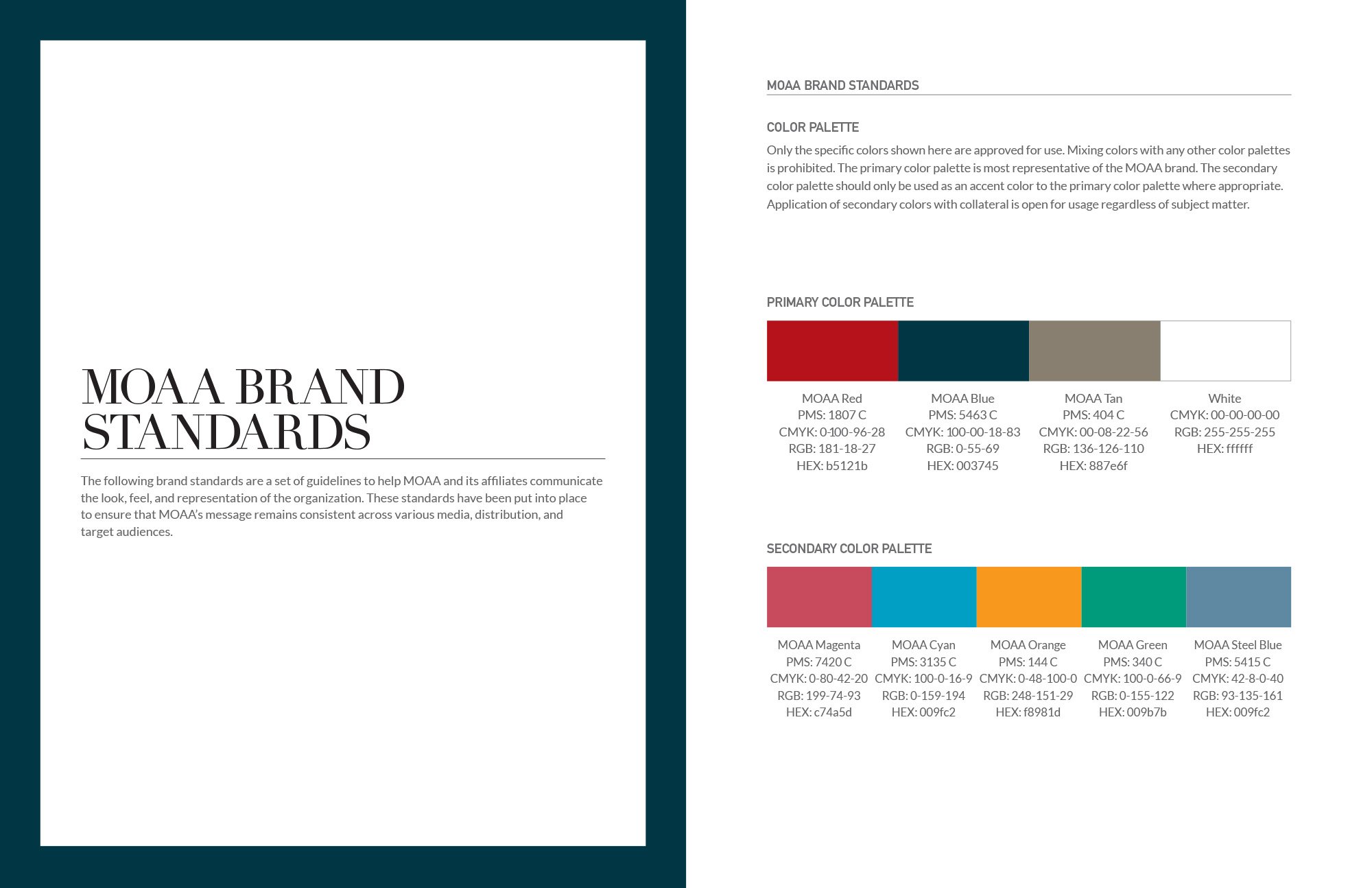 To ensure that MOAA’s brand was communicated consistently, we developed an updated brand guidebook for chapters and employees that provided clear guidance on communicating with members and prospects, as well as detailed standards for logo usage, overall brand expression, and core messaging.